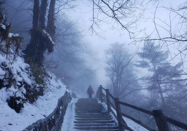 冬天的峨眉山,白雪皑皑,可以说是一步一景,如梦如幻。