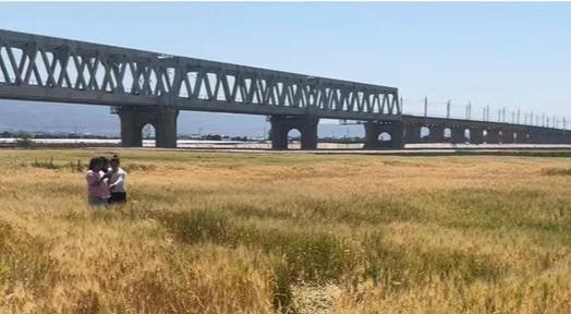 麦浪随风起伏,远处则是奔驰前行的动车,即将成熟的麦田和动车构成了一道绝美的风景线,网友称它为“西昌版去有风的地方”。