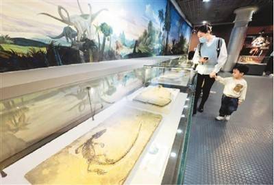 妈妈带着孩子参观古爬行动物展厅。杜建坡摄