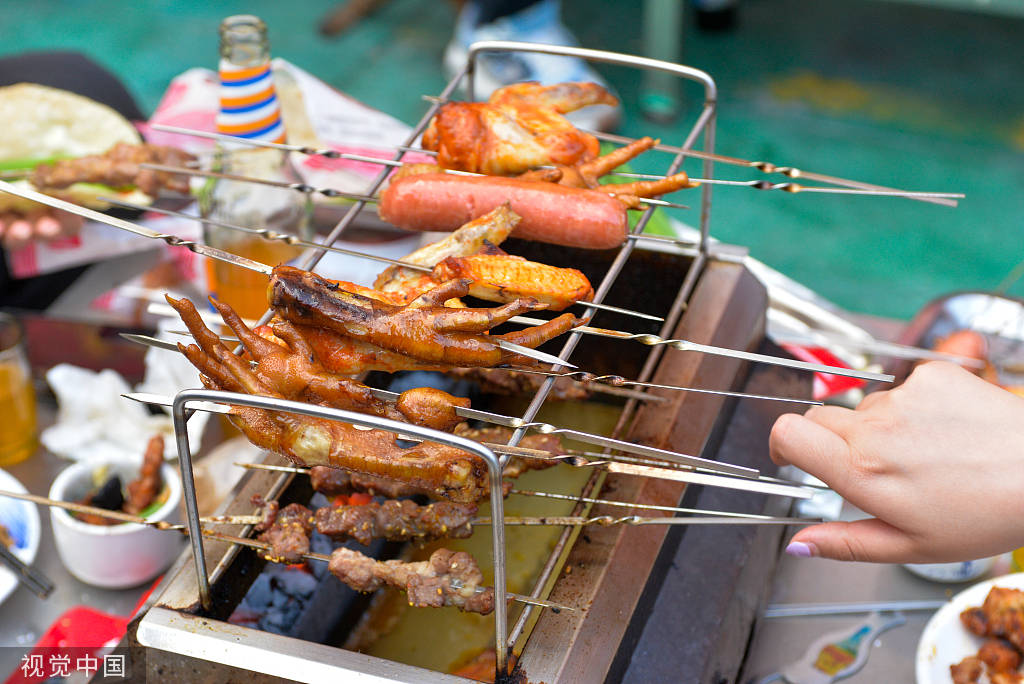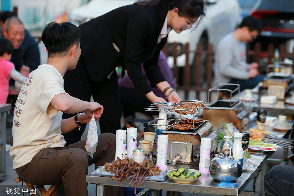 2023年3月31日,山东淄博,淄博烧烤既有围炉相聚的仪式感,又有自己动手的参与度。