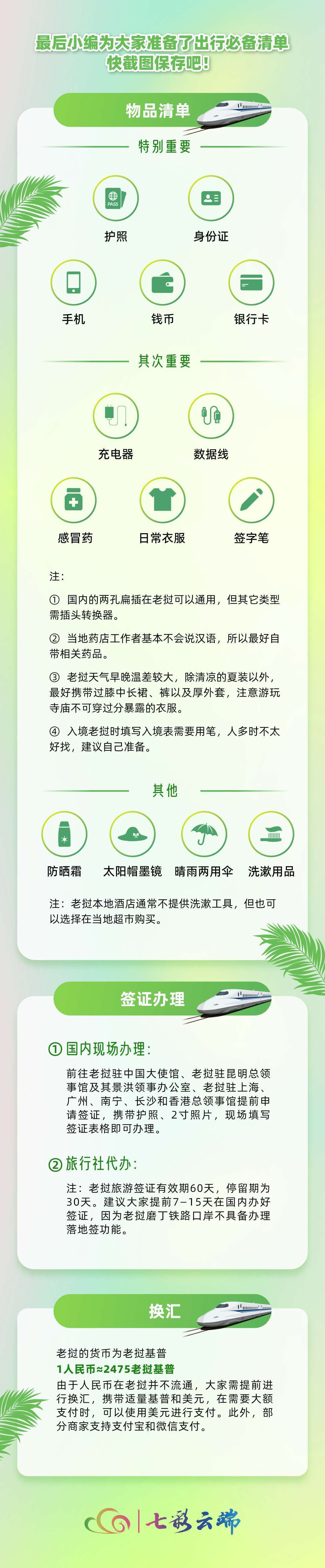 但要注意,跨境旅客进出站、口岸通关上下车时,均须核验纸质车票。购买国际旅客列车中的非跨境车厢车票,中国段实行电子客票,老挝段须持纸质车票,所以您一定要在乘车前,持购票时使用的本人有效护照,到以上中国段5个指定车站售票窗口换取纸质车票。记住了吗?好了,准备好这些必要证件,咱们就可以出发了!走起~