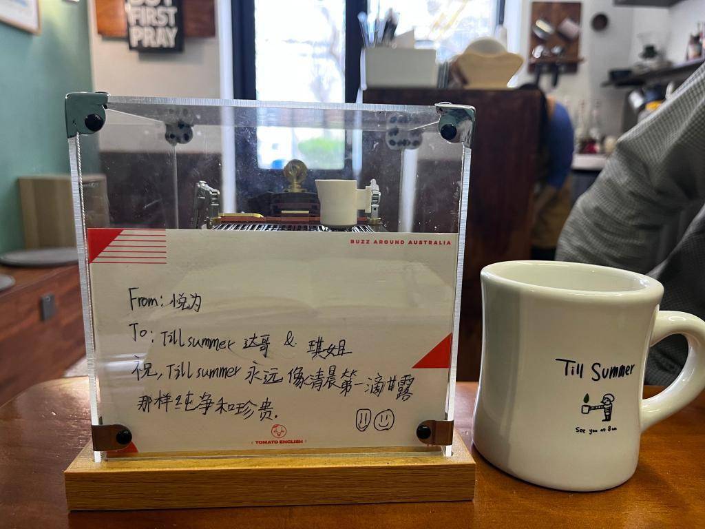 图为“Till Summer Coffee”咖啡店的客人写给店主的卡片。 新华社记者梁姊 摄