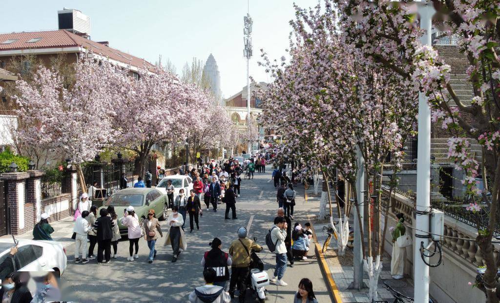 清明节前夕,和煦的春风吹开了天津市和平区五大道景区的海棠花,将一栋栋小洋楼间的各色小店装点得格外美丽。