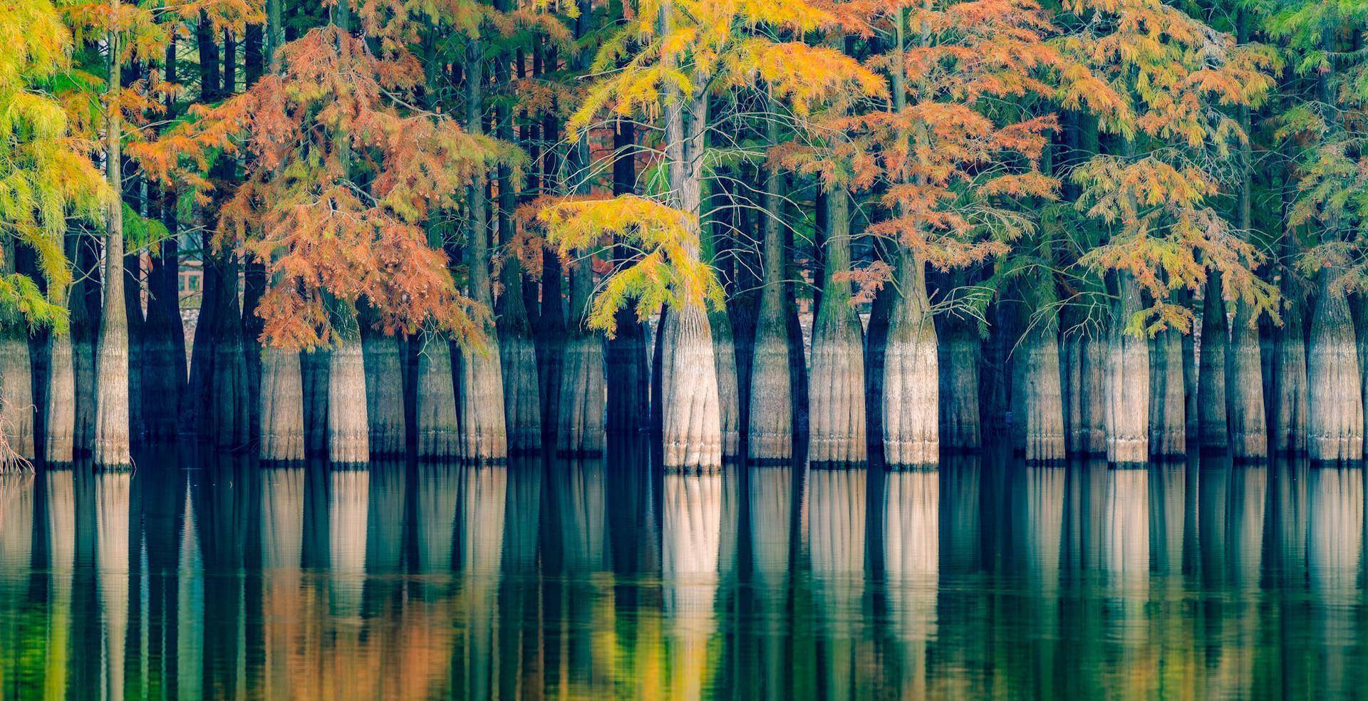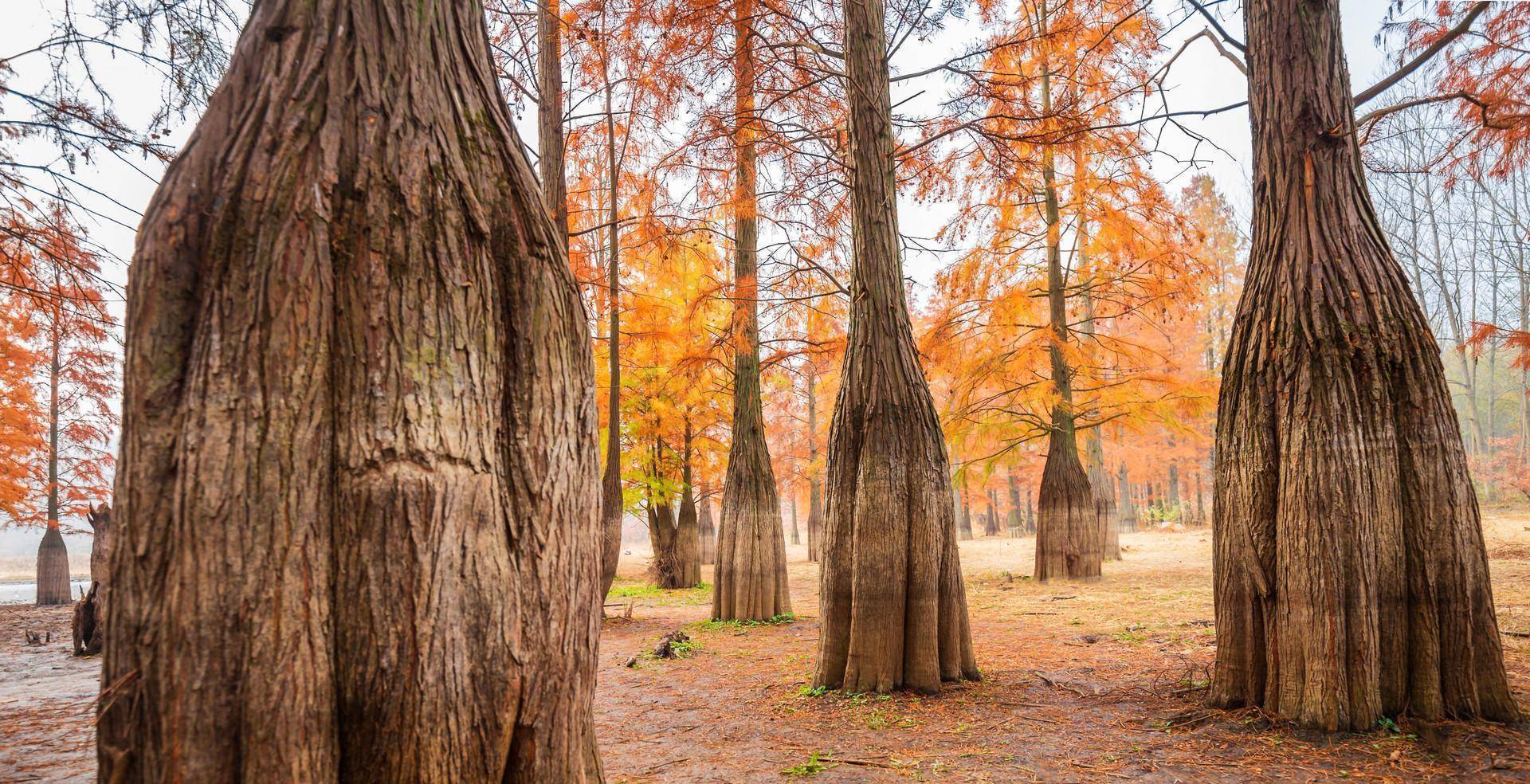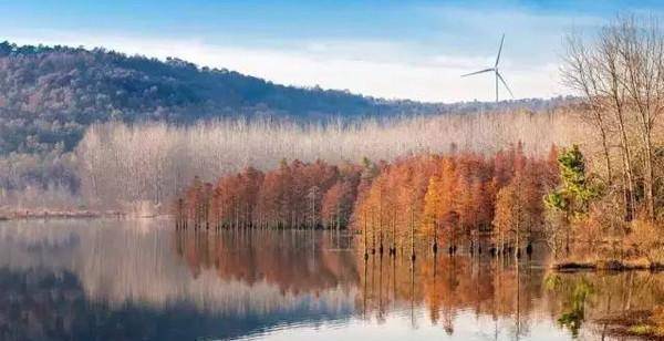 春季的时候,“漠漠水田白鹭飞,盈盈湖色一水间”,这句诗用来形容这里的池杉林是再好不过的了,60年前,排涝技术不怎么发达,可偏偏这个地方降雨严重,涝灾频繁,加上地势低洼,于是开始种树防洪,栽了很多的池杉树,慢慢的,看就形成了一片池杉林,再加上这里后面有修建了一个彭家港水库,有很多鸟类会此栖息,运气好的话,会看见成万只的白鹭在池杉上面翱翔嬉戏,如梨花瑞雪,实属难得一见的佳景。