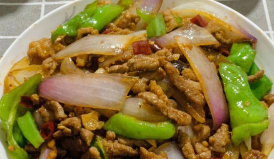 锅中放油,将腌好的里脊肉放入锅中煸炒,里脊肉变白之后再将洋葱倒进锅中开始翻炒,翻炒片刻之后把小米椒和生抽倒进去炒匀。最后加入适量的盐调味,再翻炒几下就能出锅。