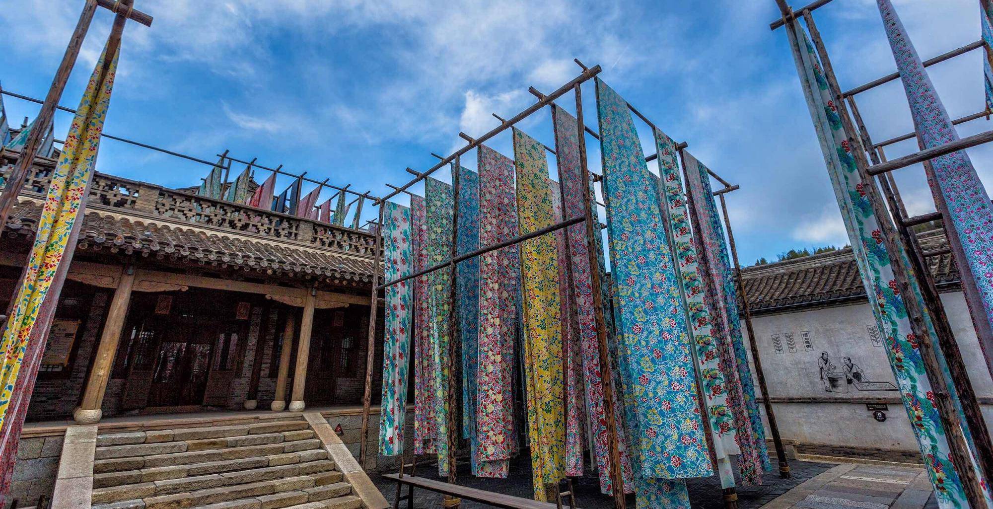 而位于水镇最东面的震远镖局,则是一座保存完整的镖局。镖局有四层,有管账房,客房,会客室和卧室等。在镖局门口还有一个露天的温泉,逛累了的游客可以在此泡泡脚放松放松。在水镇中还可以看到剪纸、染布、风筝的做法,还可以观看八旗会馆和月老祠等景点。