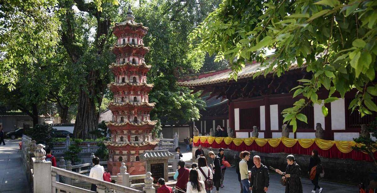 光孝寺位于广东省广州越秀区光孝路,它的前身是南越王赵佗之孙的故居,后到了三国时期,这里开始改造成寺,原名叫做“制止寺”,南宋时又改名为“报恩广孝寺”,而到了明代,这里名气很大,当时的明宪宗亲自赐其匾额,上书“光孝禅寺”,因此寺庙便改名为“光孝寺”,并一直沿用至今,是广州的四大佛教丛林之。