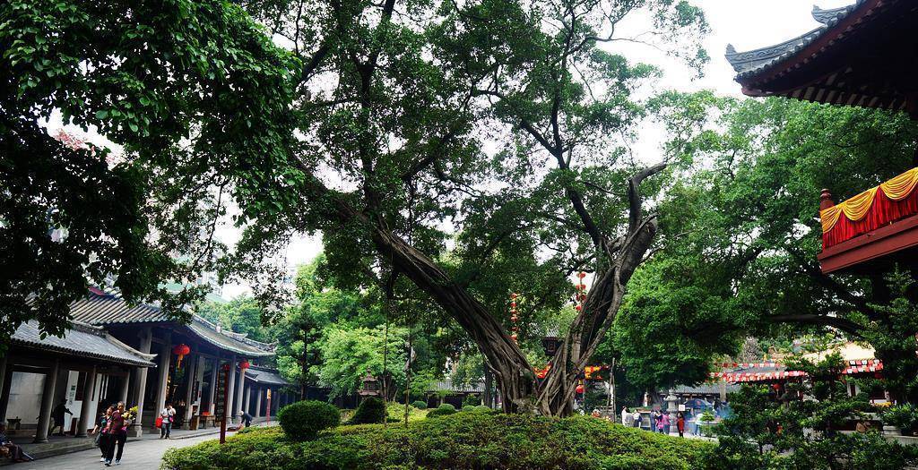 在光孝寺中的殿宇有很多,其中最著名的就是大雄宝殿,以及宋明时期所建立的六祖殿和卧佛殿,这些殿宇周边都种有很多古树,其中的菩提树还是“羊城八景”中的“光孝菩提”,在东晋时期,经常有国外高僧来光孝寺交流学习,其中就有一位昙摩耶舍法师在光孝寺设坛授戒,而后面又有一位智药法师带来一棵菩提树种在这个戒坛旁,这是我国的第一颗菩提树,而后20多年后,达摩祖师又来到光孝寺传法,而后唐朝年间,禅宗六祖慧能法师剃发受戒于此菩提树下。