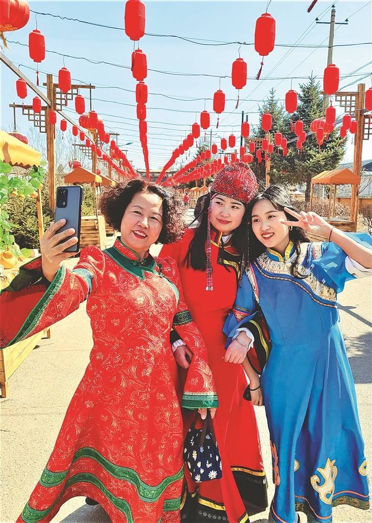 当日,近千名慕名而来的游客在新建成的“楚勒罕大街”上感受着达斡尔族非遗文化、品尝特色美食,品尝着村民自家种的瓜果和特产。记者在现场看到,不少游客对达斡尔族手工制作的葫芦、刺绣、陶瓷制品以及摊位前的绿色食品等十分青睐,纷纷购买,大饱眼福和口福。更有不少游客,换上达斡尔族民族服饰,在大街上打卡拍照、骑车留念。