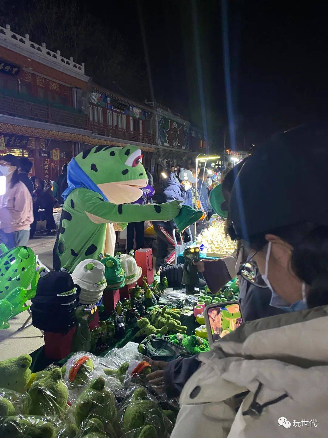 玩世代还看见了网红青蛙人现身“卖孩子”,前簇后拥围了两圈人也挤不进去。“人偶服+围观”怪诞又有趣,本身就是流量池。手机相机一按,发送小红书,线上线下流量就闭环了。
