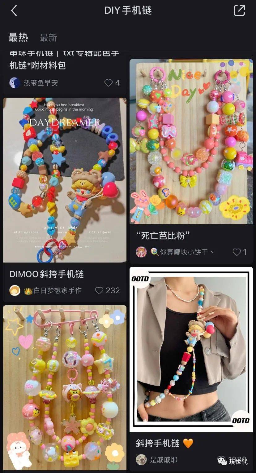 你别不信。打开小红书,这些带娃出街的挂链就是#DIY手机链# 话题1800万流量里的首屏“头牌”。