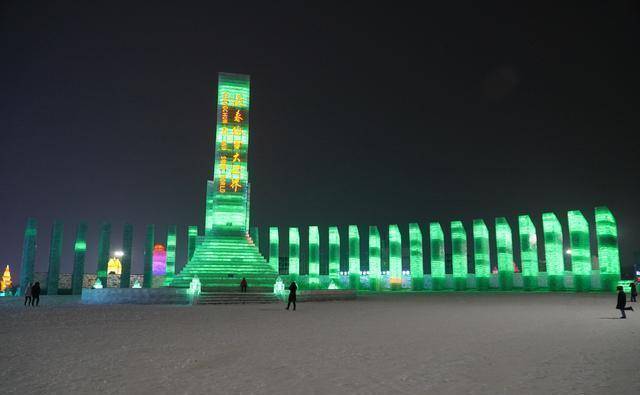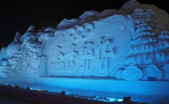 而继续往前走去,你会看到长春冰雪大世界最长的雪雕群组,礼赞祖国70年的雪雕群组最长达到157米,远远望去十分壮观。