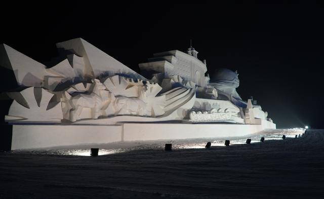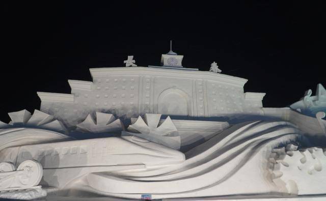雪雕上长春站造型惟妙惟肖,这组雪雕群展示了很多长春元素,如果你想了解长春的诸多发展痕迹,在这座雪雕群组里,都可以找到。