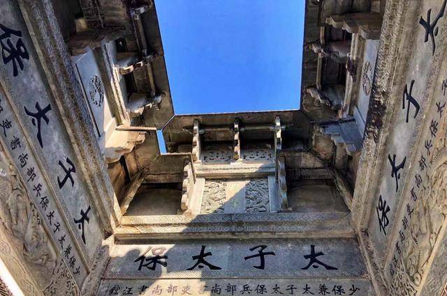 因为没有看到具体的介绍,我觉得这座四面牌坊是后期仿制的。牌坊上方写着恩荣两个字样。这里有个知识点,一般而言,品级比较高的牌坊有三种,一种写的是御赐,一种是圣旨,而另一种则是恩荣。御赐是皇帝下旨,国库出钱建造牌坊。恩荣则是皇帝下旨,地方出钱。而圣旨则是地方申请,皇帝同意,家族出钱。可见婺源这座石坊的品级还是很高的。