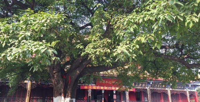 整个昭觉寺大约有128亩的面积,其整体是依中轴线而建设的,两边有虔心亭、天王殿等很多建筑,穿过这些建筑便可看到大雄宝殿。这时庞大的黄桷树就出现在人们眼前了,这棵黄桷树存在已有300多年,光是树径就有5米,因此它的树冠覆盖率也特别高,经人们测量大概有百米,并且是整个城区最大的古树,所以称它是“天府树王”。