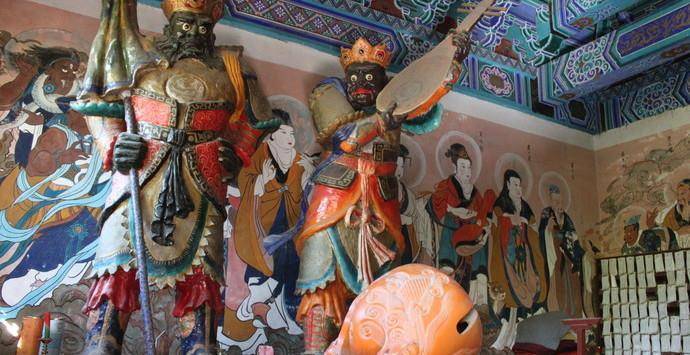 第二进陨落在东西两侧是钟鼓楼,钟鼓楼悬挂的古钟足足有一两千多斤重。院内的大殿是位于阳主庙的第三进院落,里面供奉的是阳主的雕像,据传阳主名为梁王大帝,是专门管理凡间水旱、瘟疫等疾病等神明。
