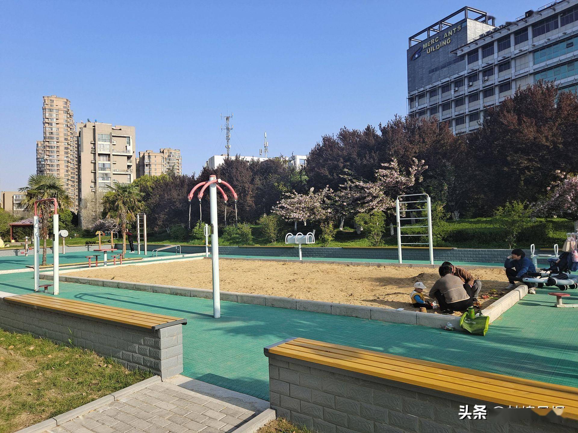 一处人工沙池区域,欢声笑语不断。“这里有玩沙子的、树影下有休闲座椅……小孩喜欢,大人也有休息的地方。”居民陆正英笑着说,“年纪大了,容易累,有了凳子就可以坐下来休息休息,对我们老年人来说太贴心了。”