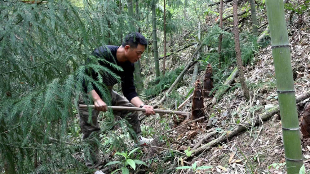 活动现场,游客们不仅可以购买新鲜的野味,还可以自己动手采摘,竹林间鲜嫩粗壮的竹笋最是吸引游客。