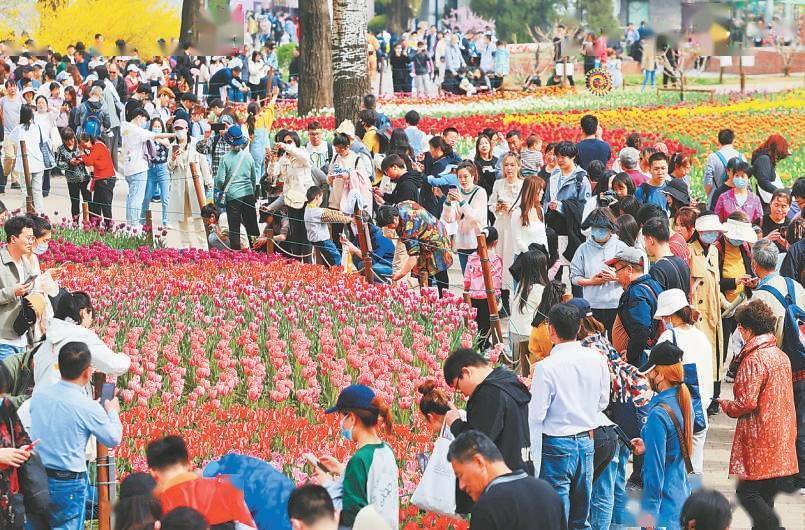 上周日,国家植物园里的郁金香竞相开放,明艳多彩的景色吸引了大批游客前来拍照留念。本报记者 潘之望摄