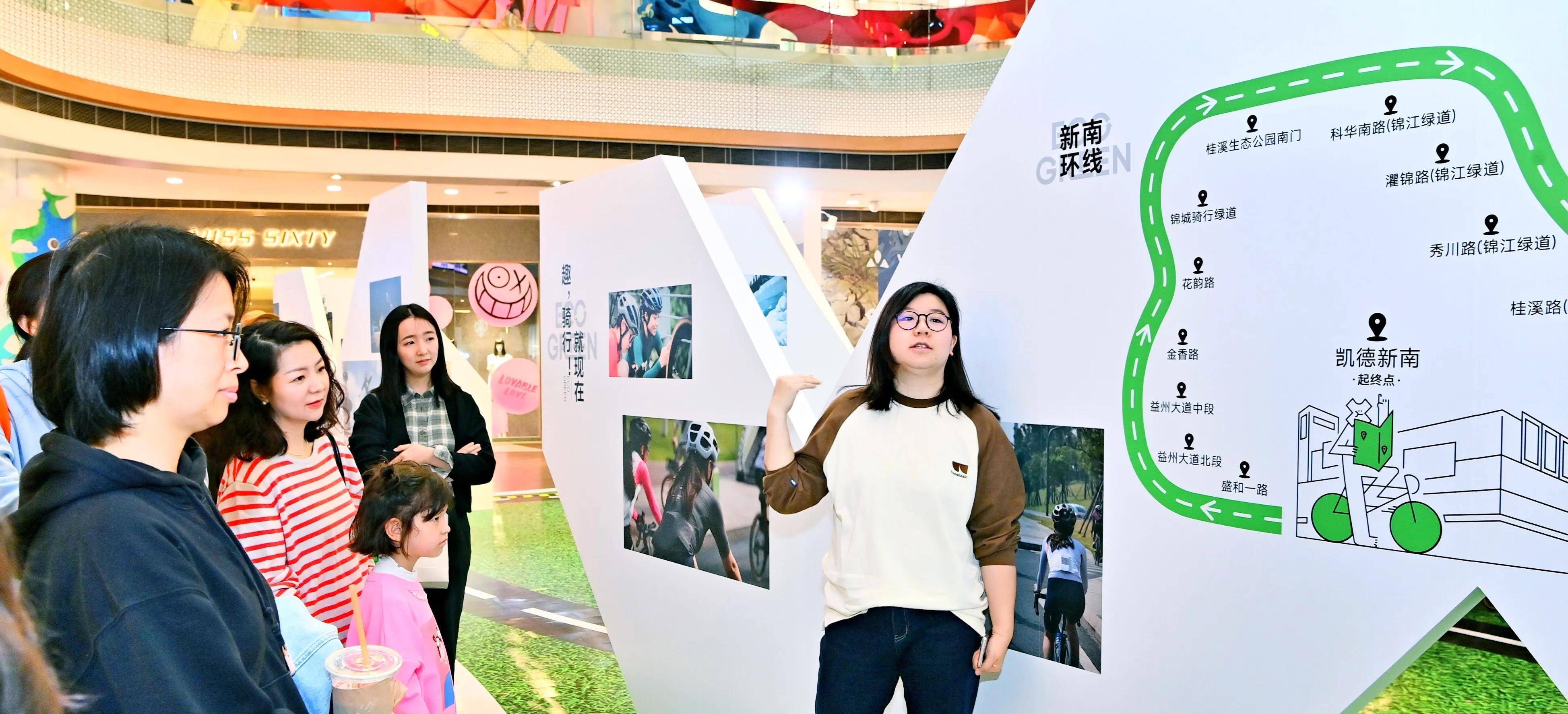 活动现场聚焦都市户外生活,呈现了多个运动社交新场景。“打造首个城市骑行中转站,通过商业载体呈现消费需求丰富、服务供给充足的运动社交聚集地。”记者在该商场户外广场看到,中转站还为骑行爱好者提供了随时停靠、即时充电、休闲小憩等增值服务。位于商场一楼的“跨越,山海城市微探险展”则将山野文化和探险精神植入成都人的日常,通过影像、互动体验等方式带领大众来一场城市微探险。