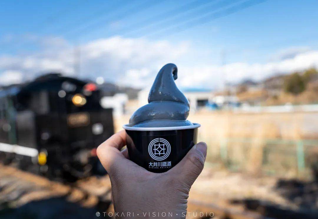 在KADODE里还有非常有特色的SL冰激淋——「漆黑」和「烟」。因为在这里还是大井川铁道“门出站”,每天都可以看到非常具有时间历史感的SL列车从站前经过。所以,这是根据这里的SL列车特别设计的冰肌力。别看外观相当特别,味道可是奶味十足,超好吃的!