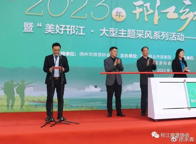 副区长张玲在讲话中代表区政府,热忱欢迎广大朋友关注邗江、走进邗江,欣赏优美的自然风光、体验深厚的历史文化、领略独特的乡土风情,热切期盼各位领导、各位来宾一如既往关心支持邗江旅游发展。她表示,邗江区有关部门将努力当好东道主,做好服务员,为大家创造良好的旅游环境和氛围。