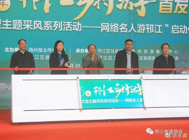 出席启动仪式的领导还有扬州旅游协会旅行社分会秘书长、扬州旅游集散中心负责人张荣辉以及甘泉街道办事处主任吉和庆等。邗江旅游协会部分理事单位也参加了活动。“邗江乡村游”组织者之一张荣辉介绍,今天,扬州旅游集散中心共组织了200位游客参加首发游。后续集散中心将联合其他旅行社,组织更多游客分赴邗江各乡村游景区(点)。为此,在邗江旅游协会协调下,目前已经开辟了多条旅游线路,供旅行社选择。扬州报业集团相关负责人介绍,本次“网络名人游邗江”活动邀请全国有影响力的网络大咖、以及本地知名网络人士、专家学者、网媒记者等组成采风团,用镜头定格美丽,用笔触记录发展,多维推荐邗江美景、传播邗江声音,展示一个真实、立体、全面的美丽邗江。(邗旅协)