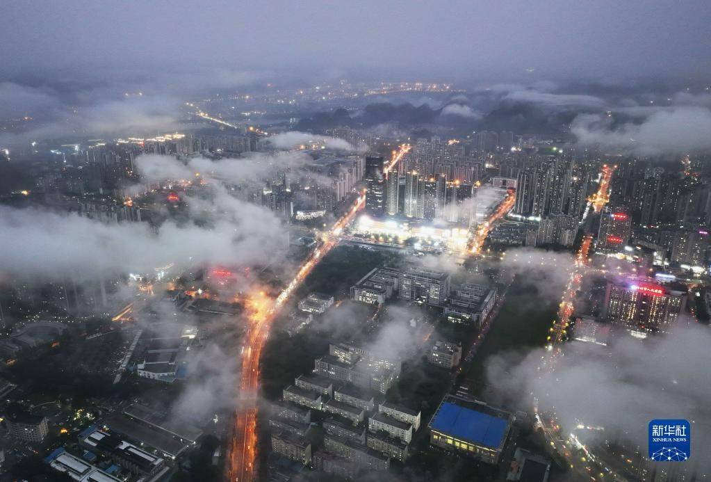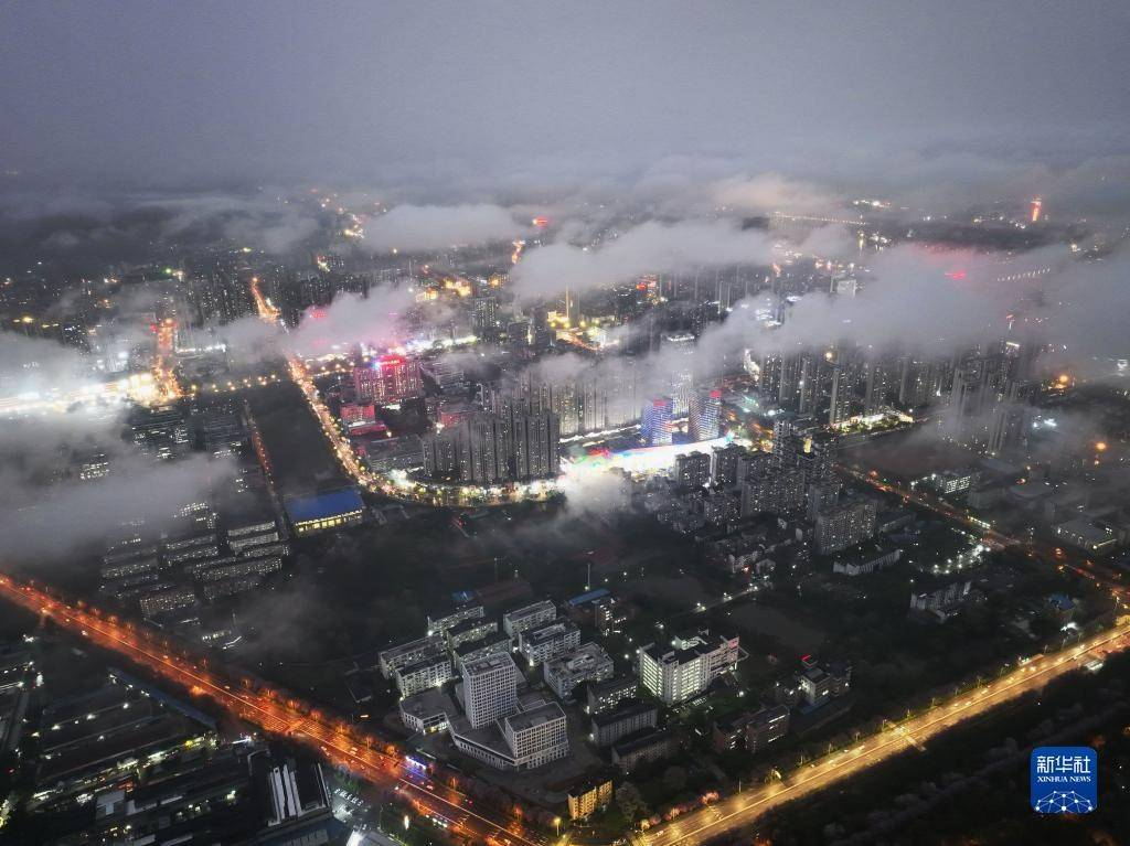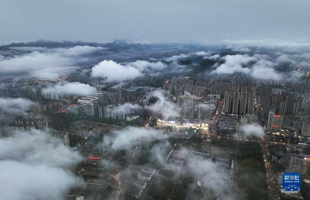 4月10日,雨后的广西柳州市云雾缭绕,白色的云雾与一栋栋建筑交相辉映,美不胜收。