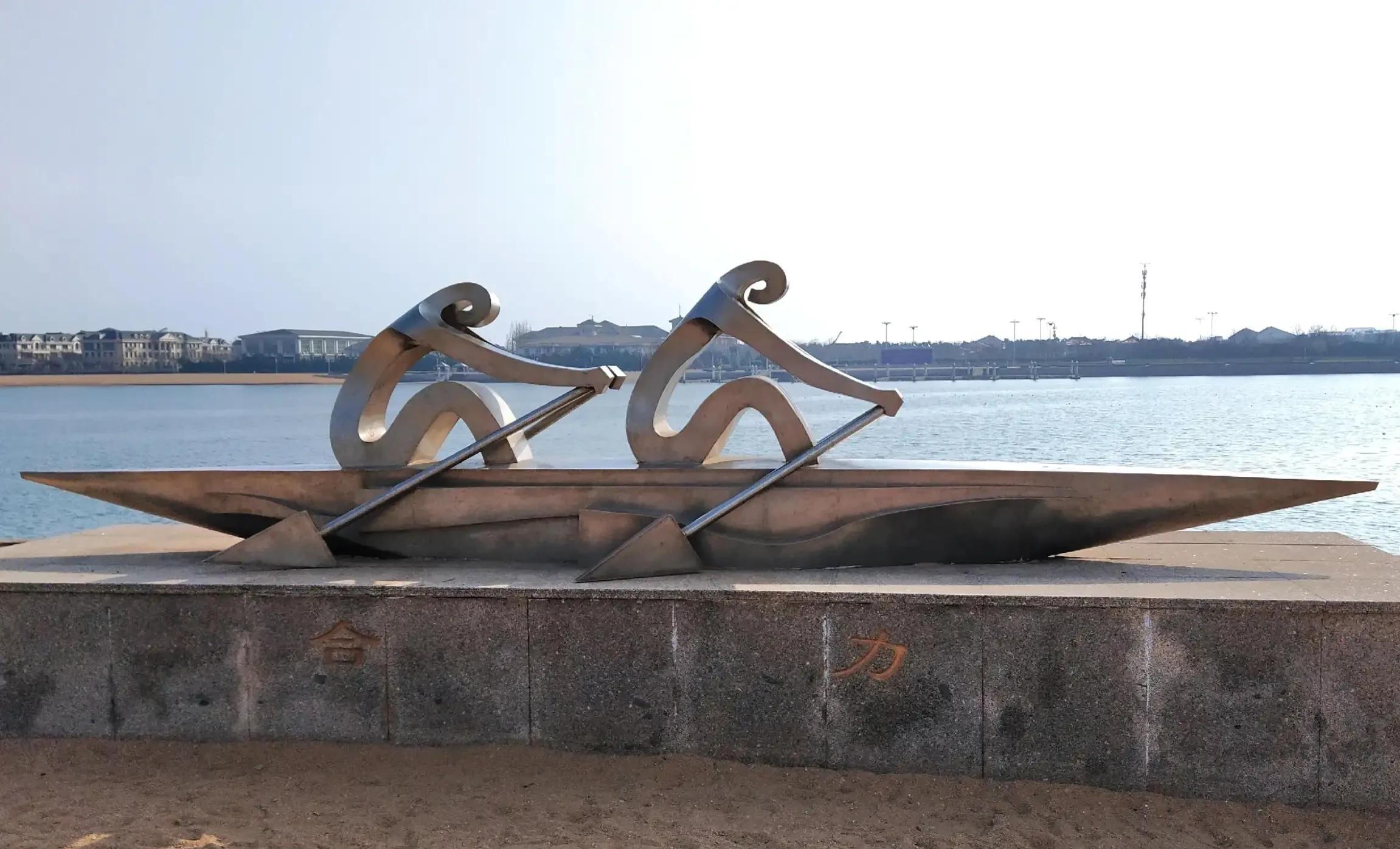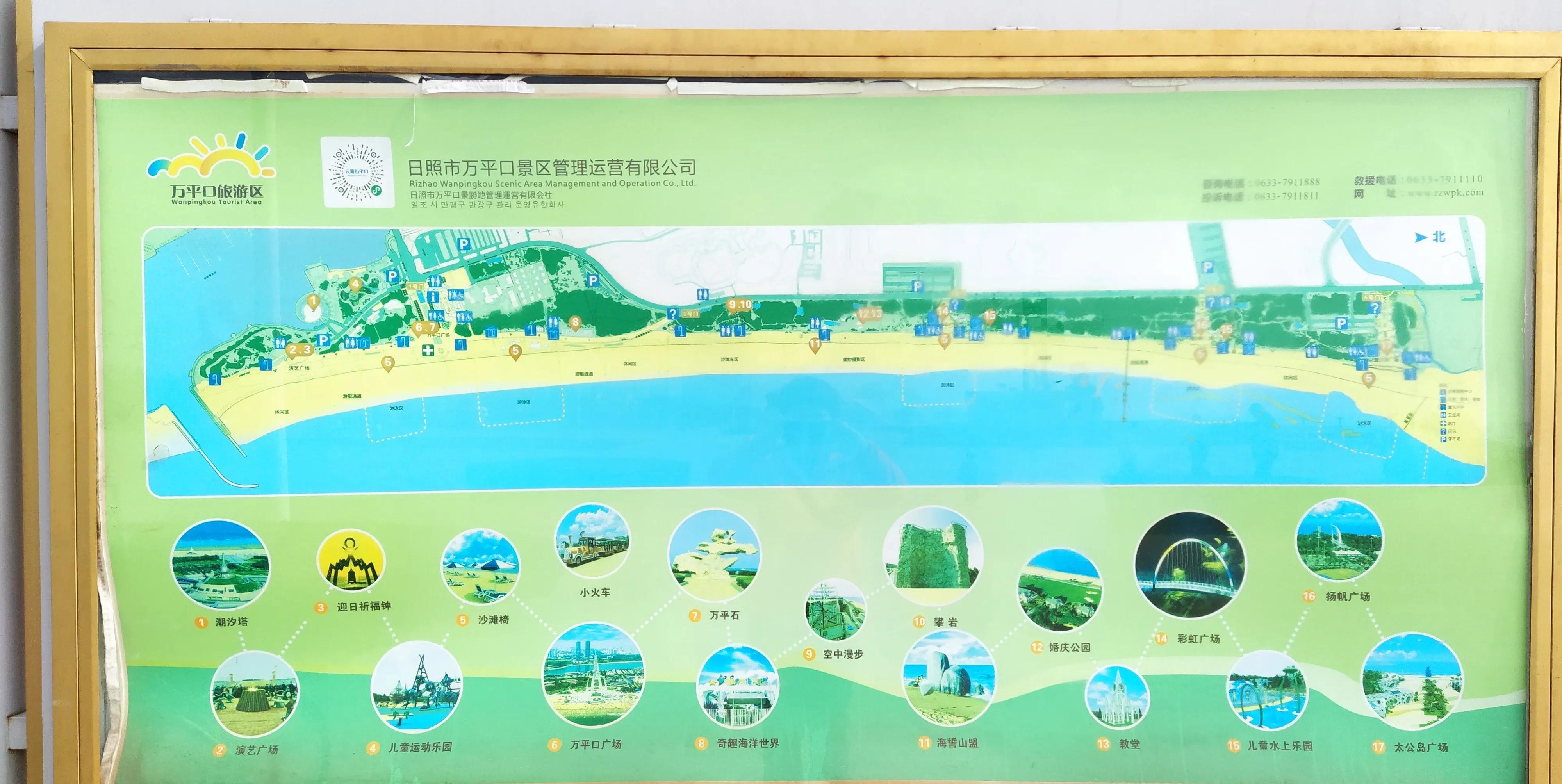 我们一行人是头一天晚上入住的日照东港区山海天路一家宾馆,这里离万平口不远。第二天8点左右我们来到万平口太阳广场。太阳广场坐落于泻湖的西岸,是日照水上运动中心所在地,在这可以乘龙舟,打海上高尔夫,也可以乘坐观光小火车游览万平口景区。