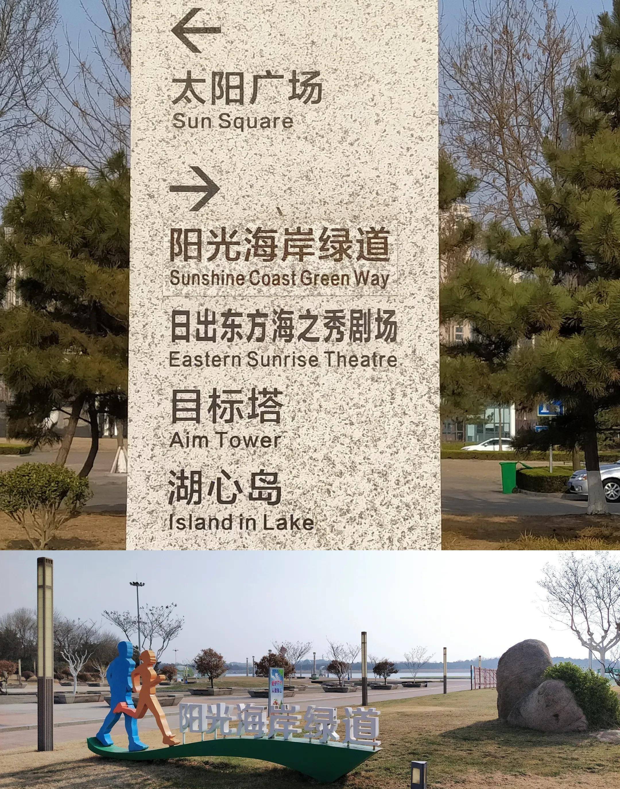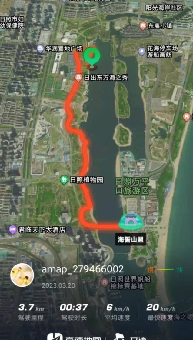 我在高德地图上查询了一下附近的景点,先向北骑行,骑到了日照皮划赛艇训练基地,又折回,沿阳光海岸绿道一路南行,目标“海誓山盟”。