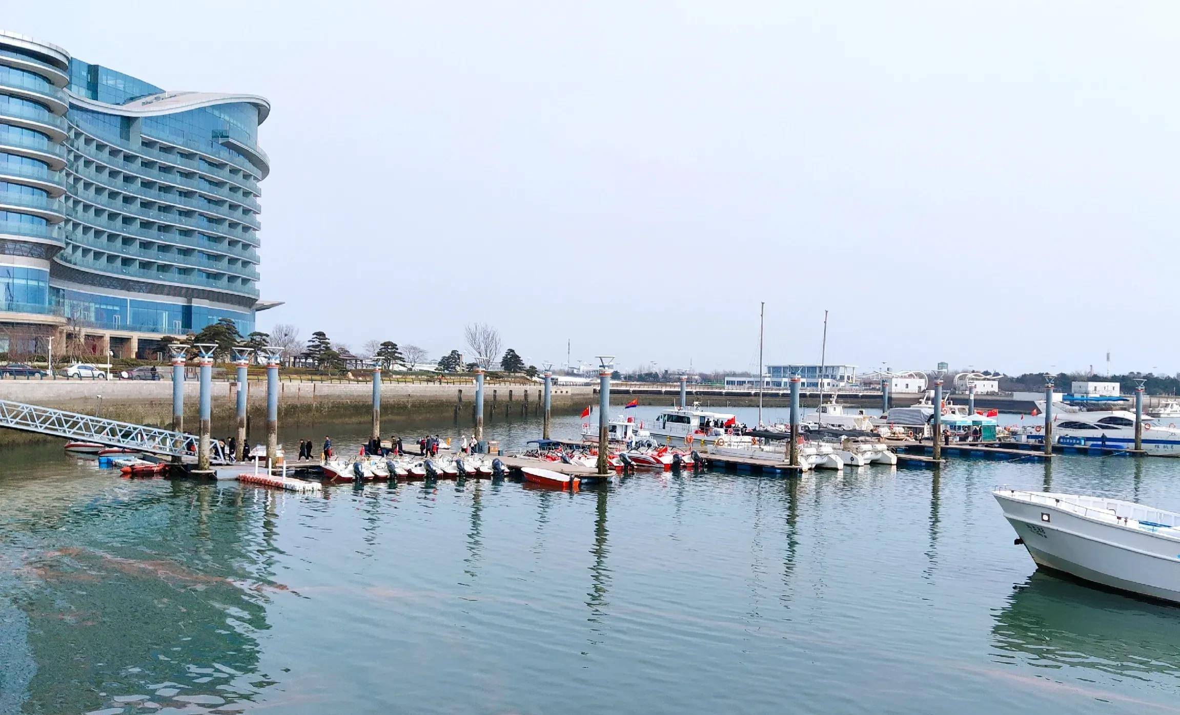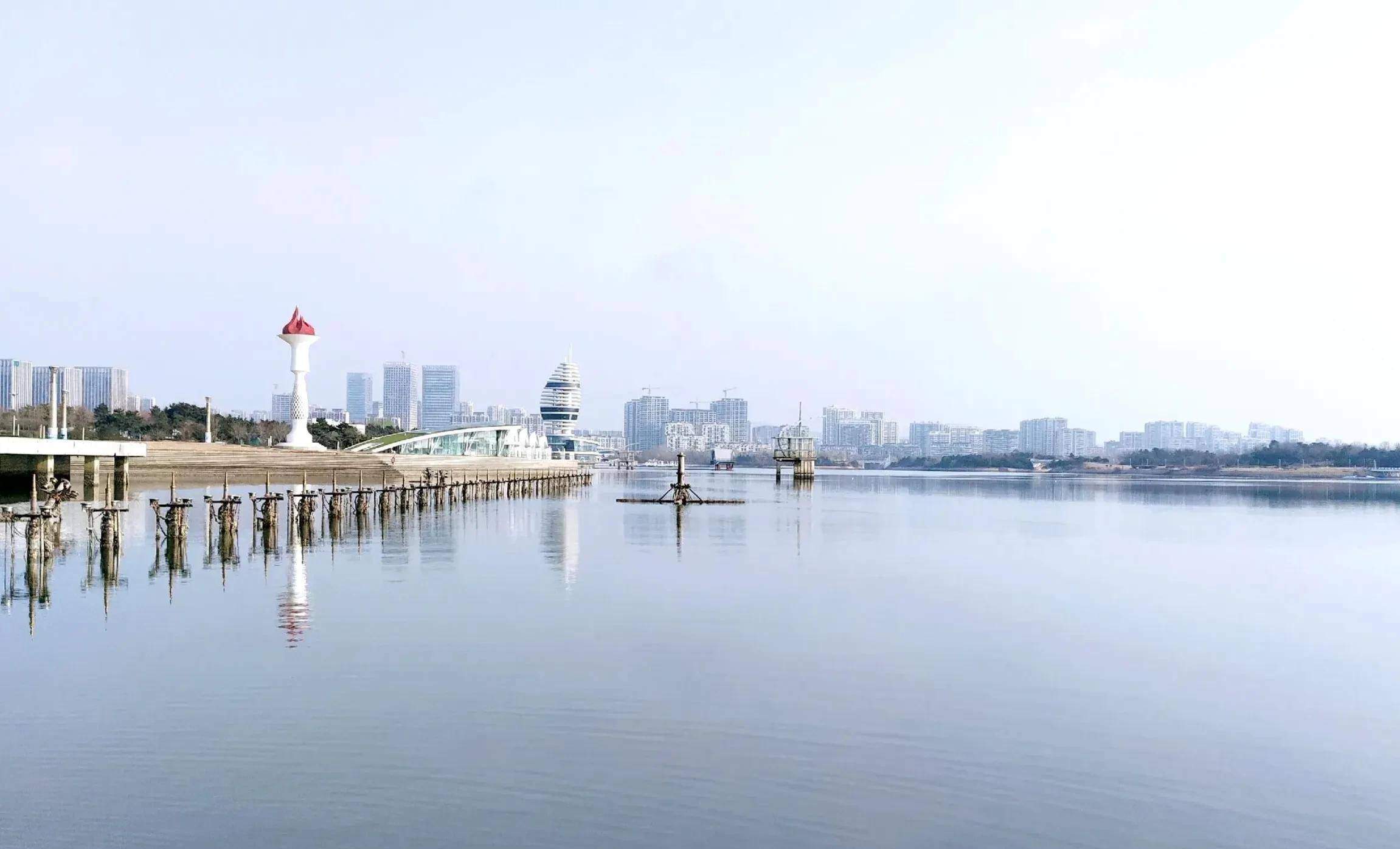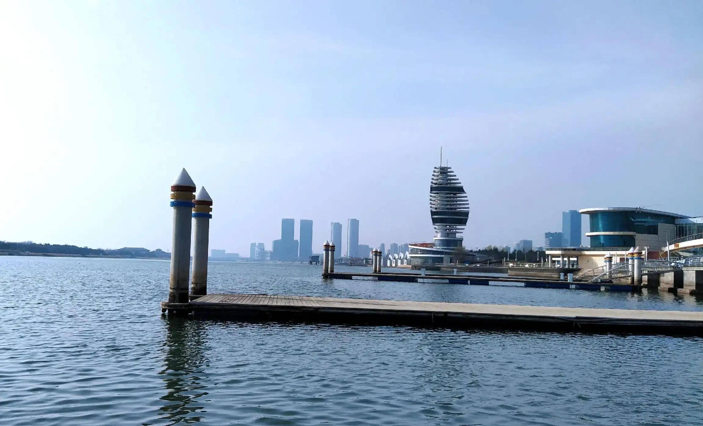 我与伙伴们汇合后,到世帆赛基地参观。世帆赛基地依泄湖而建,在万平口大桥的南侧,对面是潮汐塔。