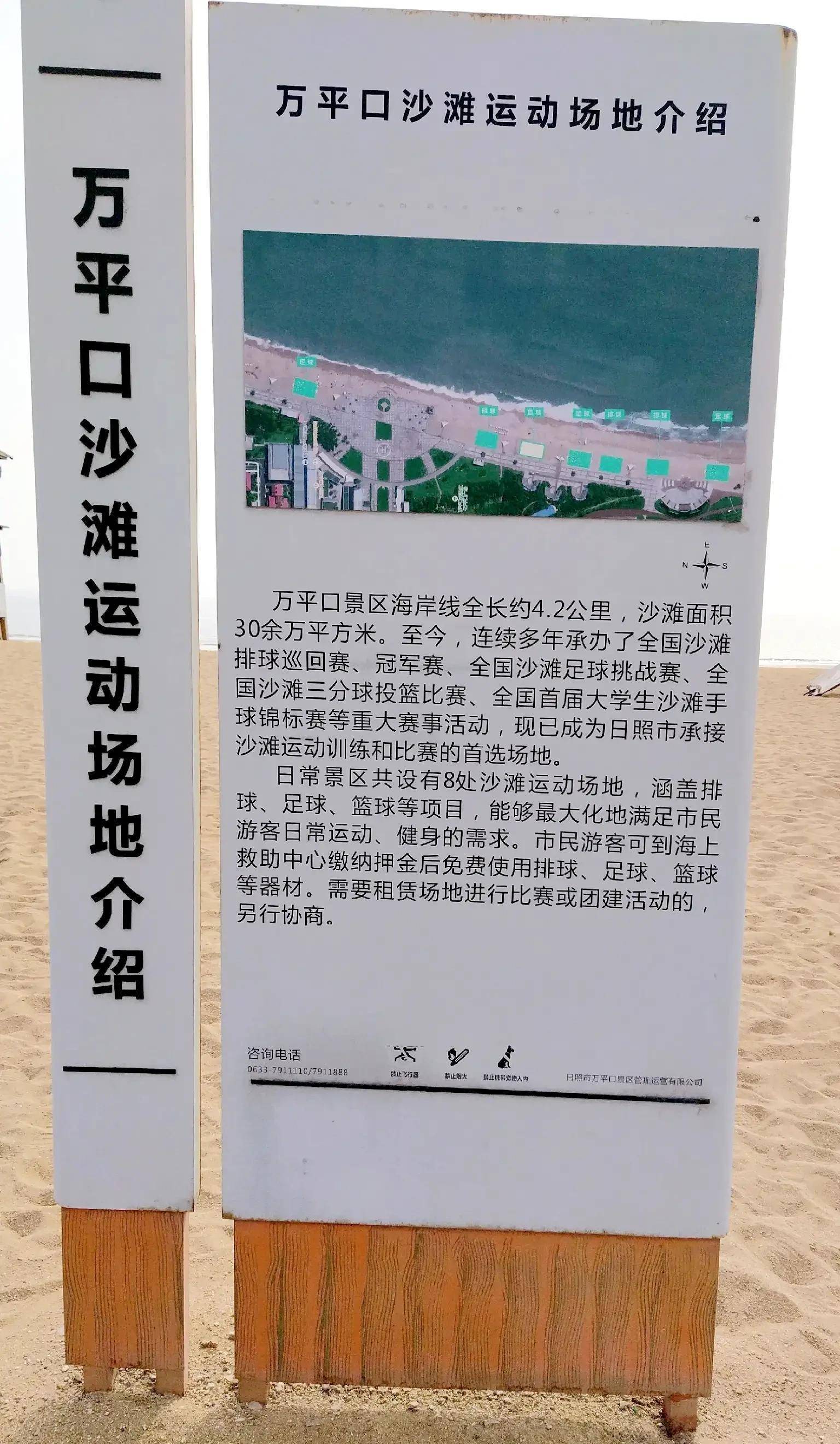 万平口沙滩宽阔平坦,修有沙滩运动场地,游人可以付押金免费使用排球、篮球、足球等运动器械。