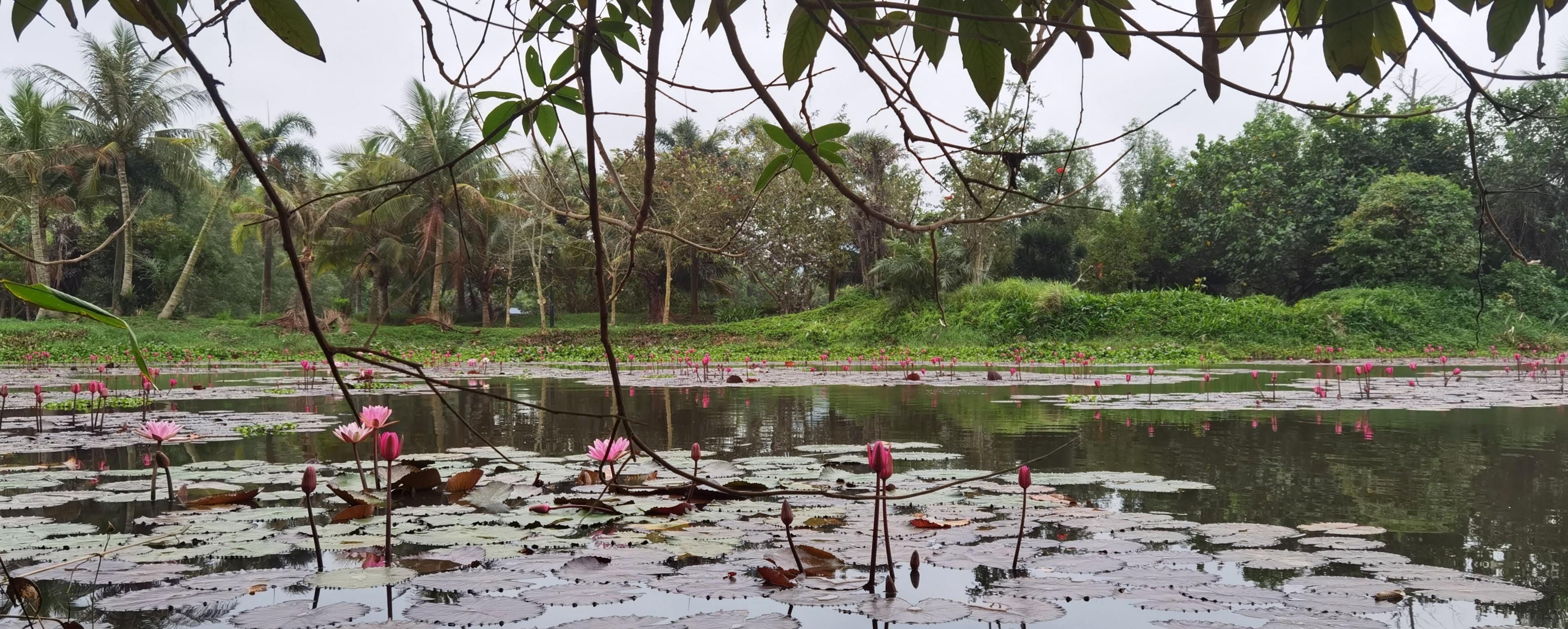 湿地中心的湖泊里种满了莲花,2月里看到盛放的粉色和白色的荷花,让人倍感珍惜。