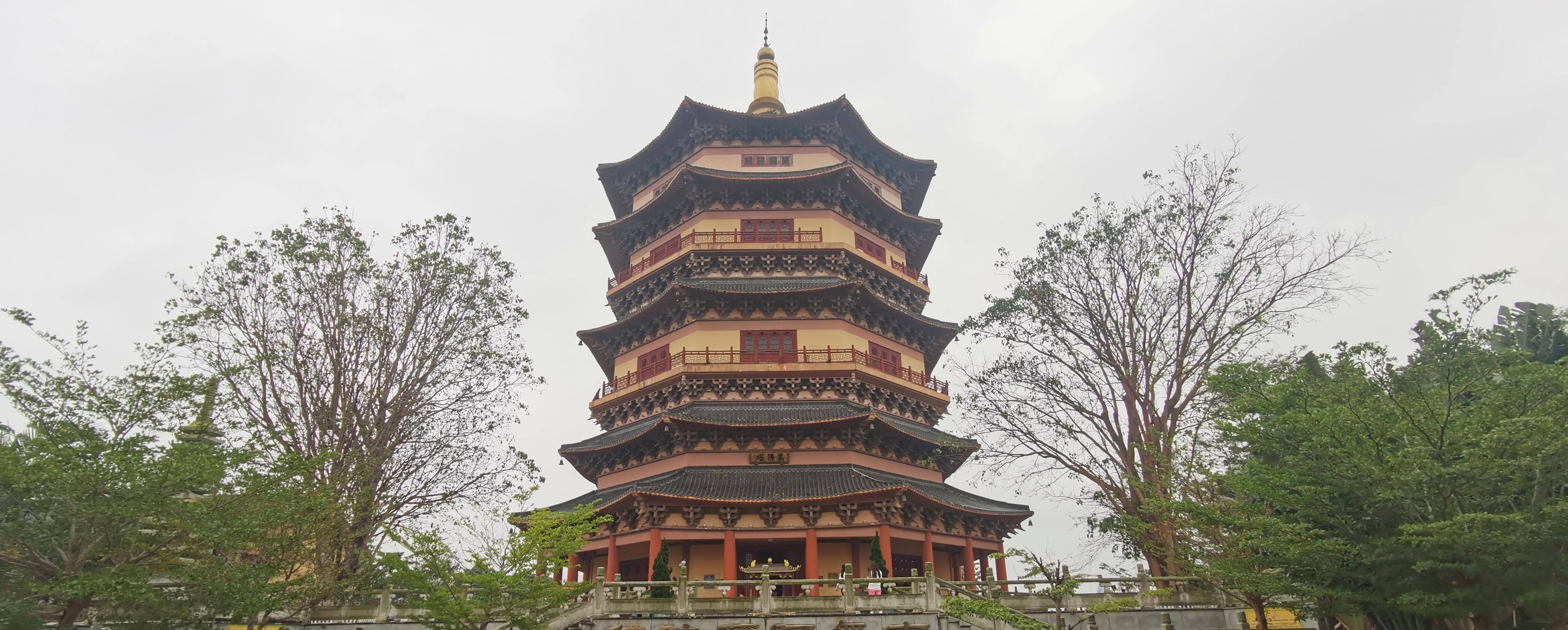 这是一个新修的寺庙,最高处的山顶有一座高塔,在博鳌应该算是标志性建筑了。