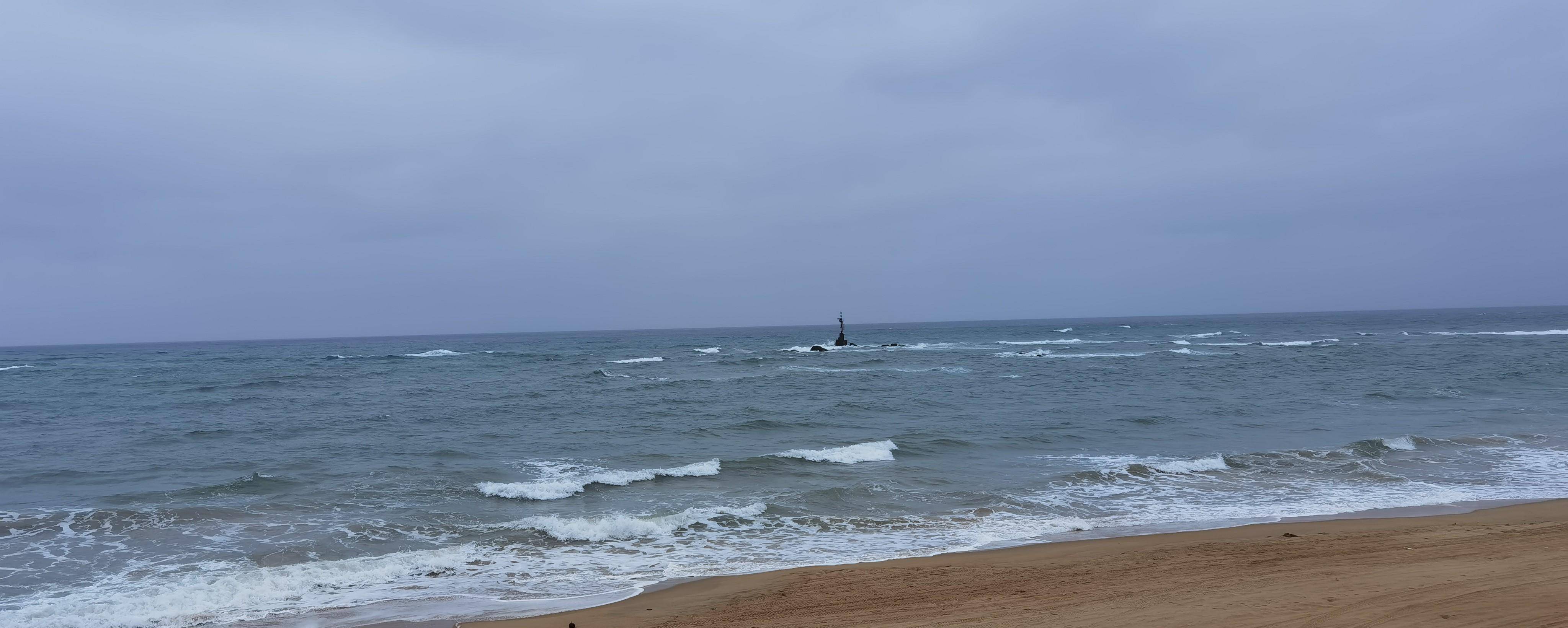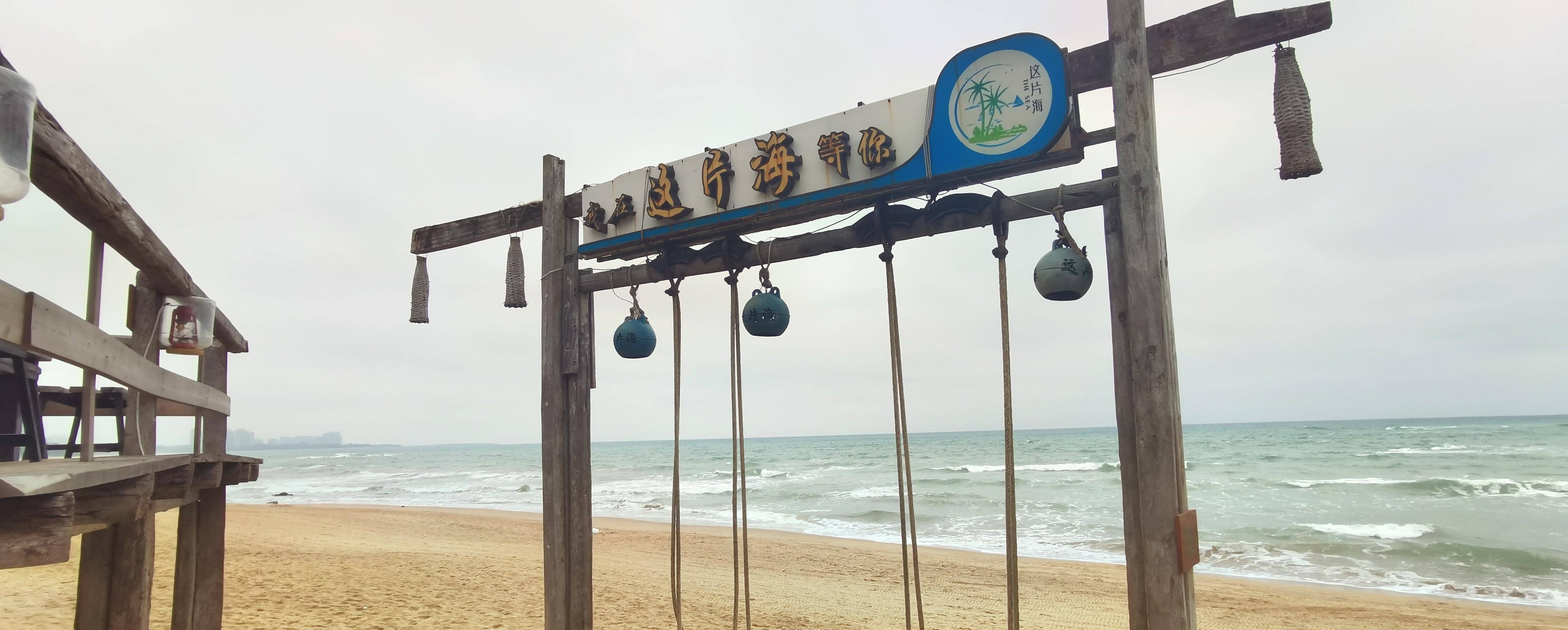 民宿这条街离海很近,这边的海湾叫玉带湾,成片的沙滩边是一条酒吧街。