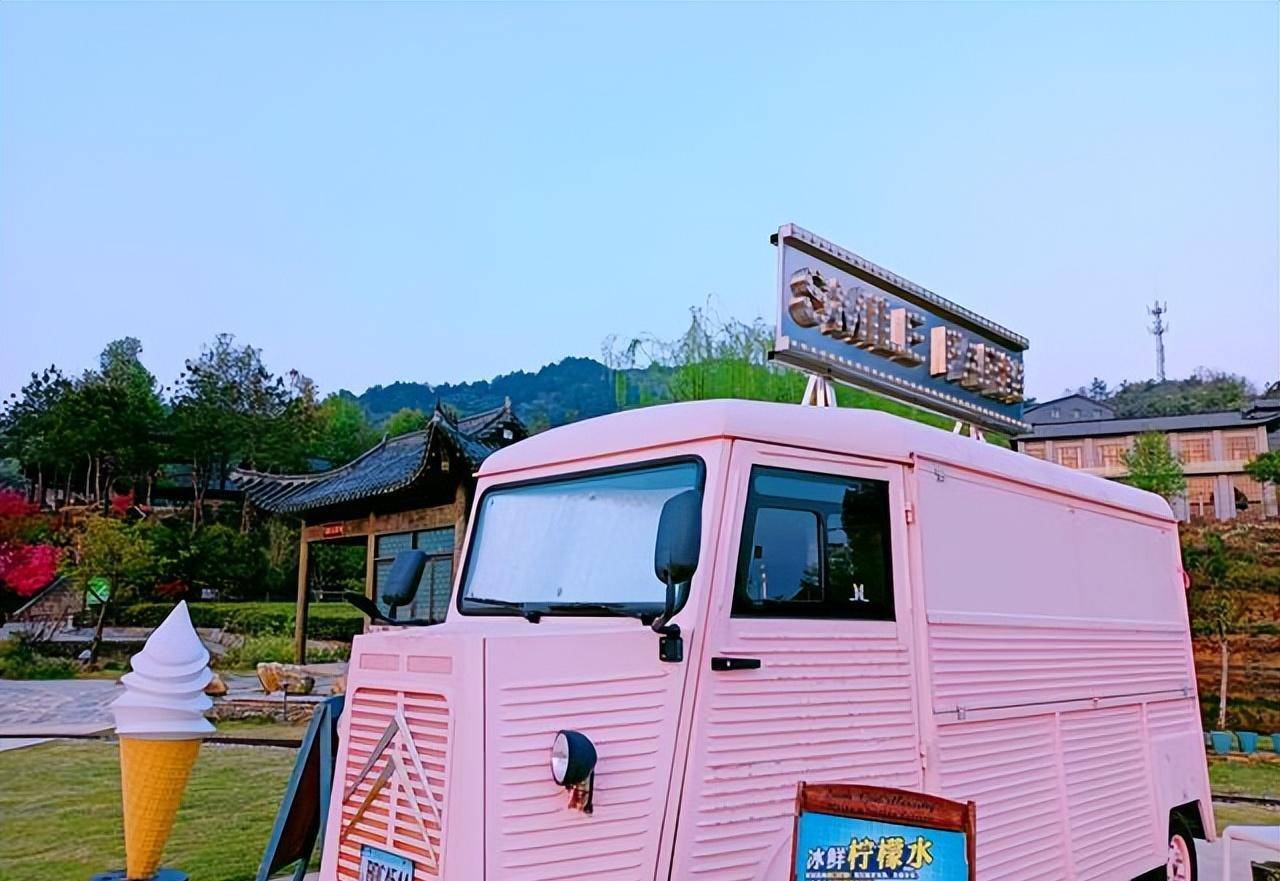 逛累了还可以在粉色冰淇淋车上买一个冰凉可口的冰淇淋。