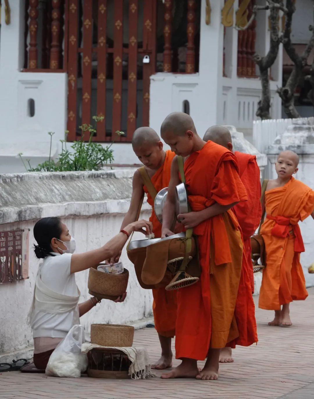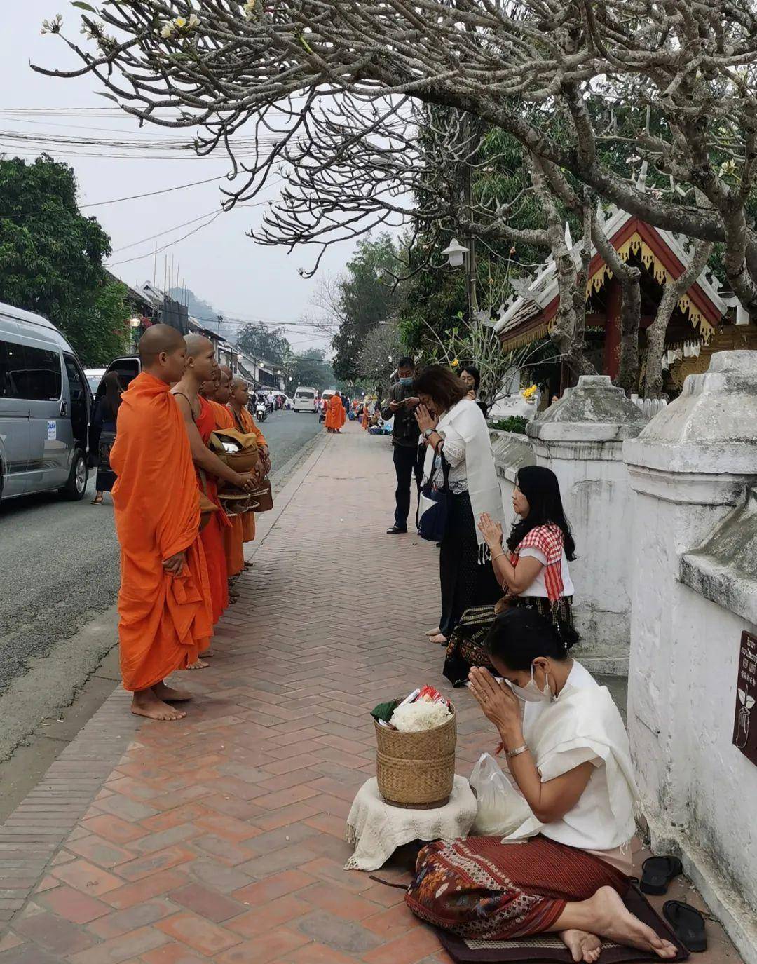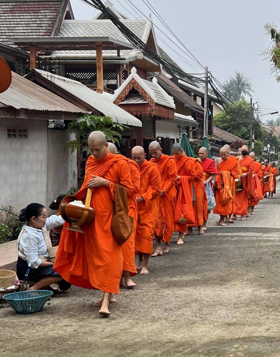 这是琅勃拉邦每天太阳升起时都会进行的仪式,当地称为:清晨布施