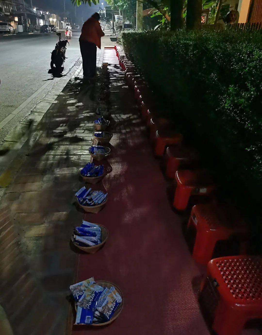 其实布施在小乘佛教的地区很常见,只是琅勃拉邦比较集中,寺庙也都汇聚在Th Sisavangvong大街上