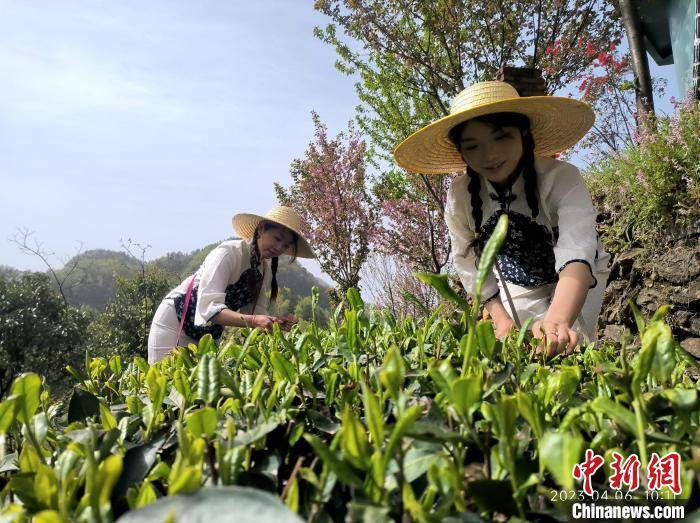 中新网十堰4月11日电 (许海芳 彭涛 胡传林)仲春时节,湖北武当山八仙观村千亩茶园满目苍翠,花香十里,成为一道亮丽的风景。