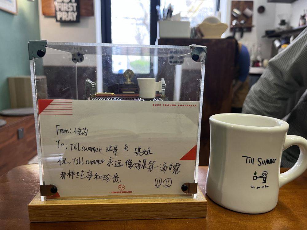 图为“Till Summer Coffee”咖啡店的客人写给店主的卡片。 新华社记者梁姊 摄