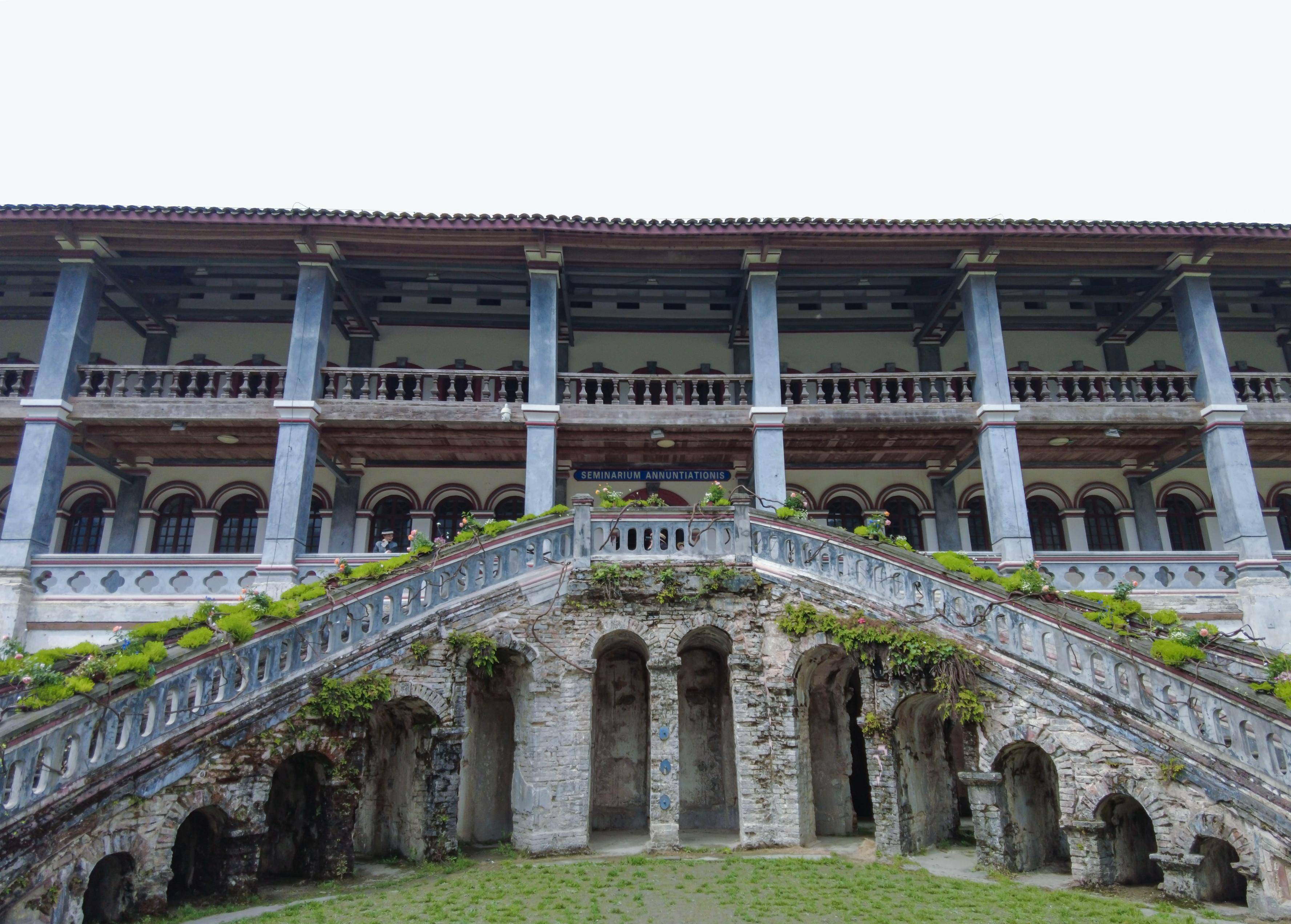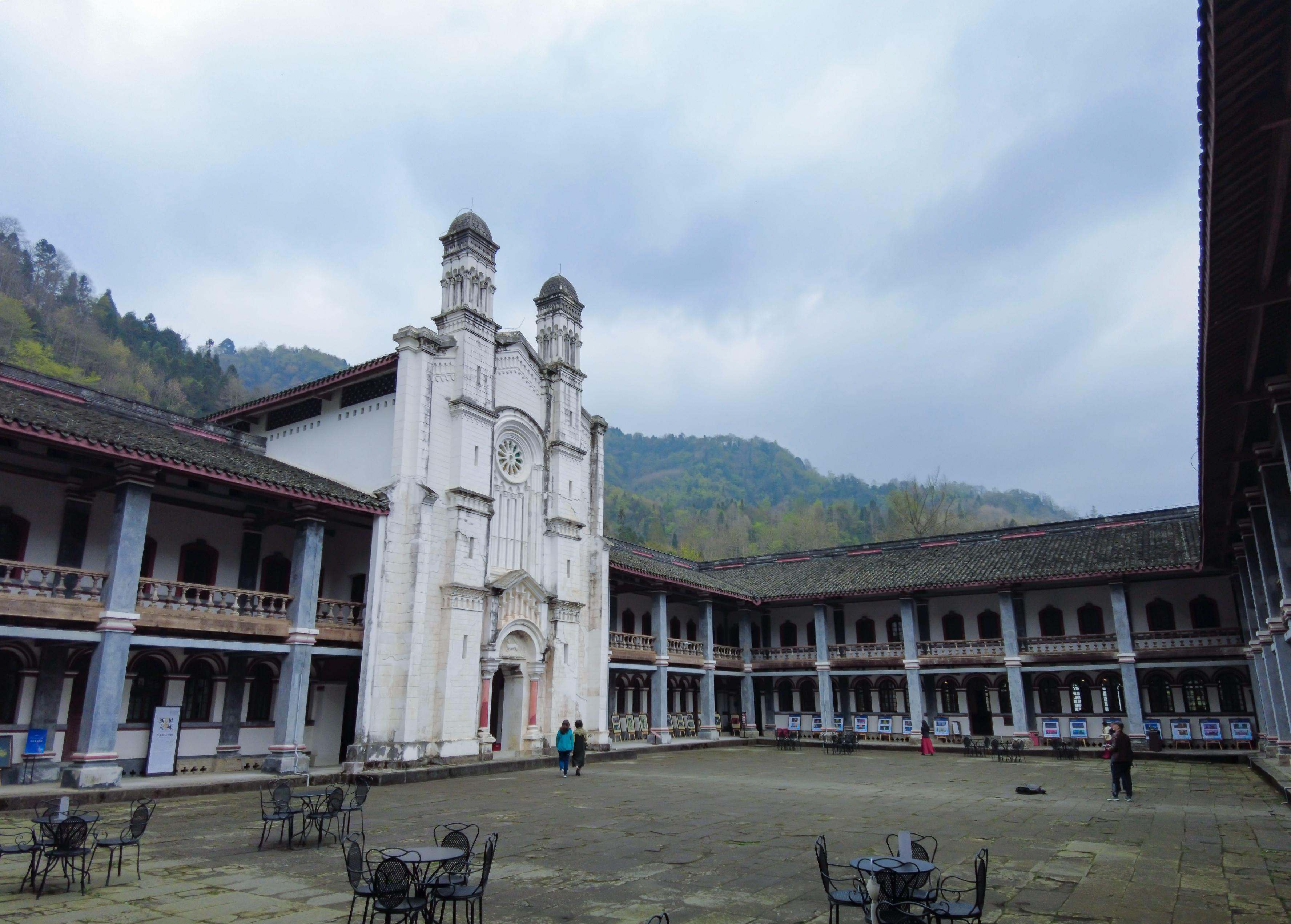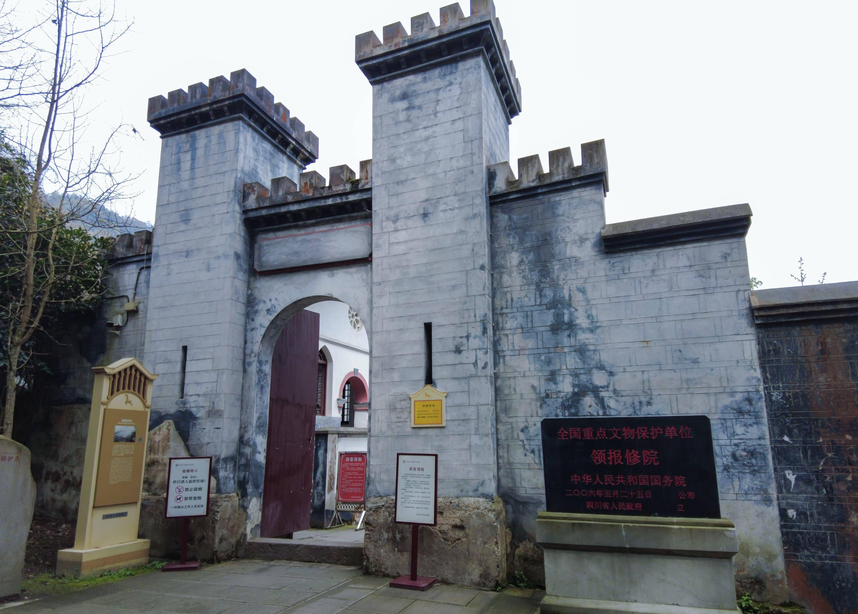 领报修院修建于清朝光绪年间,也就是1908年,至今已经200多年的历史,它是由法国天主教传教士骆书雅主持,伯历山负责修建。外部建筑风格是典型的西方风格,而内部的装修确是典型的重视风格,整个建筑三面环山,气势恢宏,雄伟壮丽,别具一格,是成都地区仅有的少数的18世纪的西式建筑。