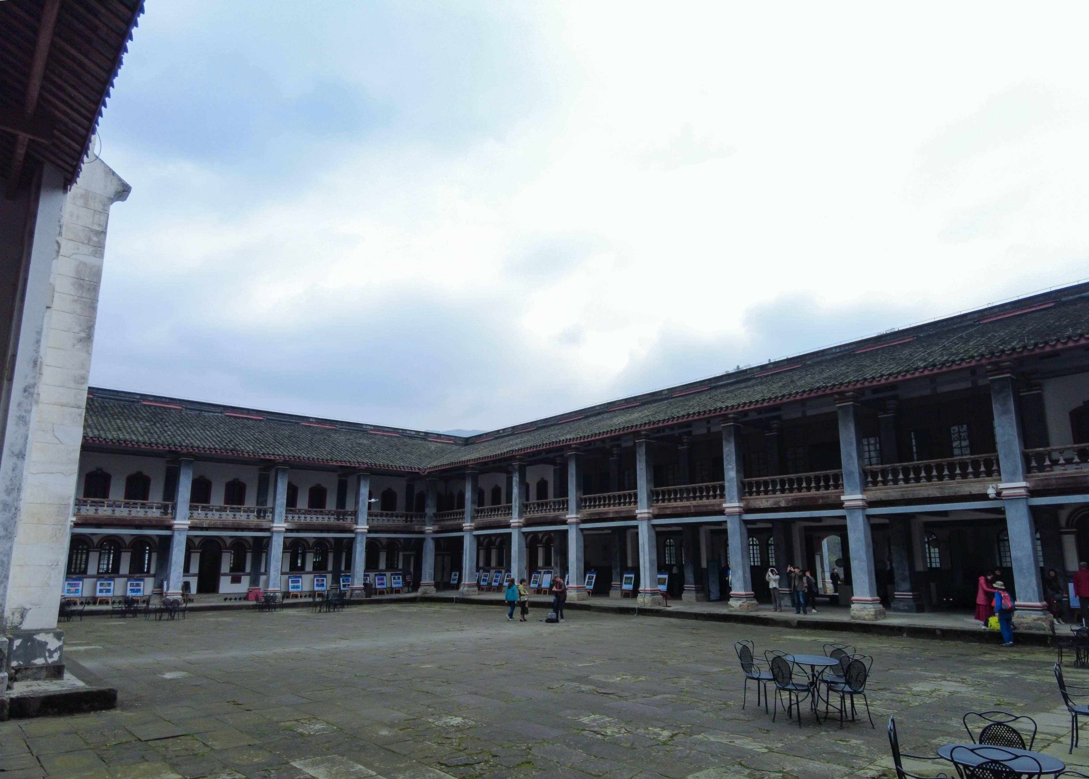 从正门进入,可以看到两旁的大厅里面,的确是古色古香的中式奢华装修风格,富丽堂皇,而门外则是一个很大的广场,广场正面就是高高耸立的教堂,很多游客在回廊和广场上拍照,很可惜我没有带无人机,不然若是从空中俯瞰,那一定是另外一个美丽的画面,但是我能想象的到,从上往下看,这座白鹿上书院,就是回字形建筑哦!