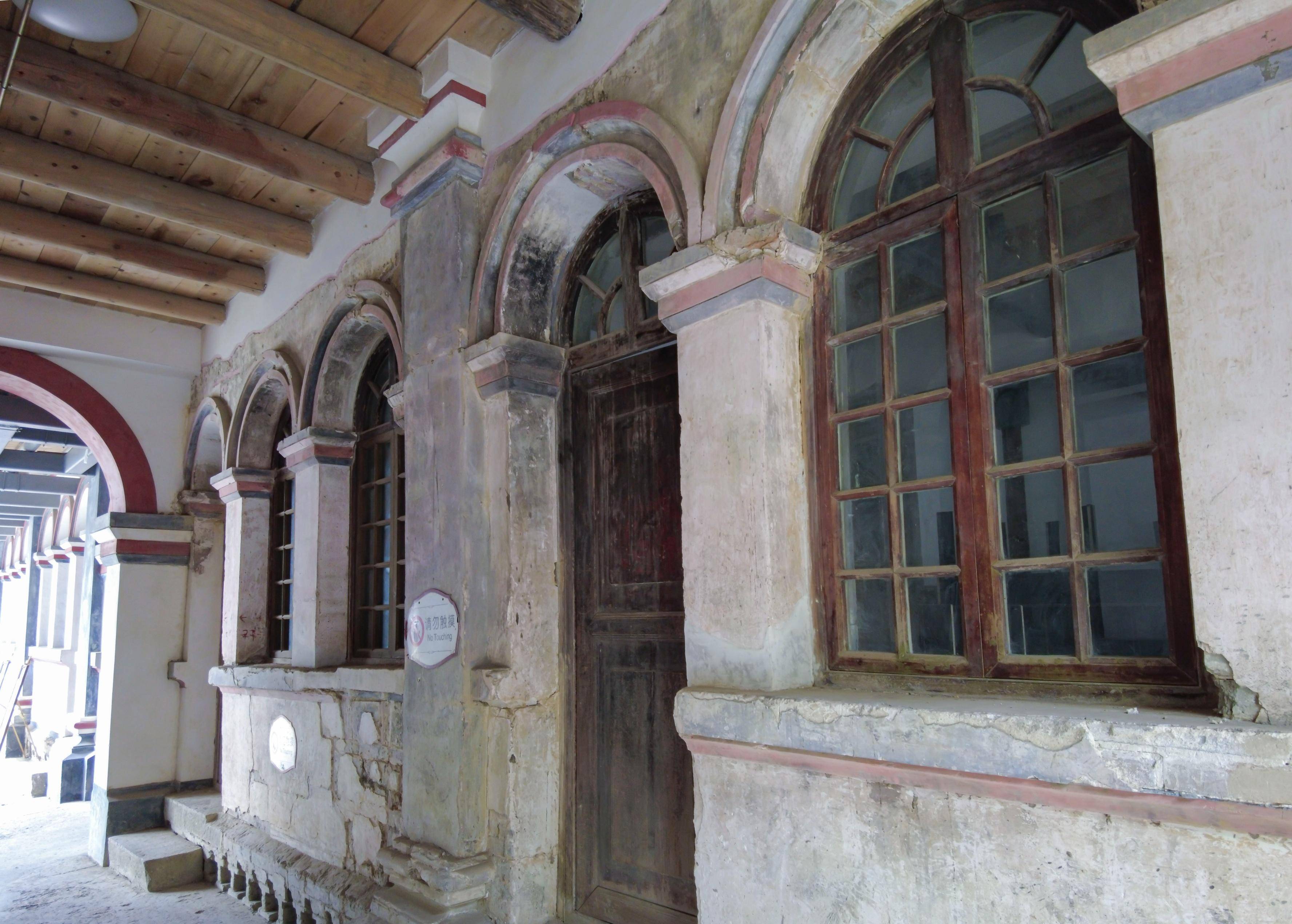 走上楼梯,是一条长长的廊道,白色的墙,红色的窗,再配上青石板,但从色彩上就给我留下了简单而大气的感觉。