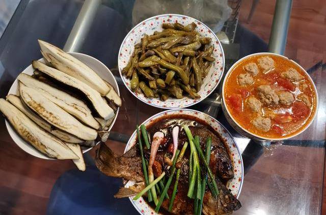 其实,自我感觉王志强做的这做菜还是蛮不错的,但唯一缺点就是不够精致,一份菜的量也太多了一点,所以看起来也就没有什么食欲!看看王志强准备的一荤两个素菜,还有一道番茄圆子汤,两人吃这些分量一看就知道多了一点。四季豆和茄子是前几天就买好放在冰箱里,一直没有吃,今天正好把四季豆烧了,四季豆有些偏老,老茎比较多,吃起来口感不太好。