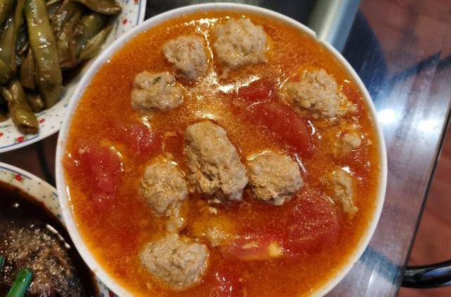 这满满一大碗番茄圆子汤,都要满出来了,圆子口感还处理得不错,比较细嫩,但圆子外观上看起来烂糟糟的不成型,确实有点影响食欲!