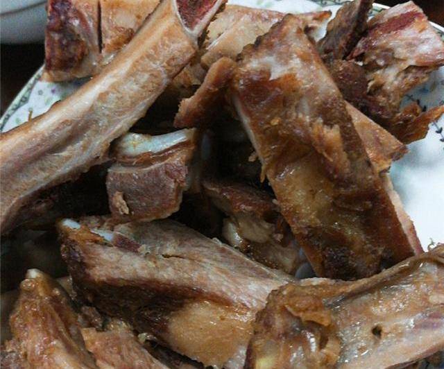 味增排骨,听说西北菜的分量和东北菜一样很足,当他们把一大盘子的味增排骨搬到桌子上的时候,我也抖了,一根排骨头很大,听他们说这些排骨都在高压锅里炖了一个多小时,已经完全入味了,用手拿着直接啃,吃得很上瘾。