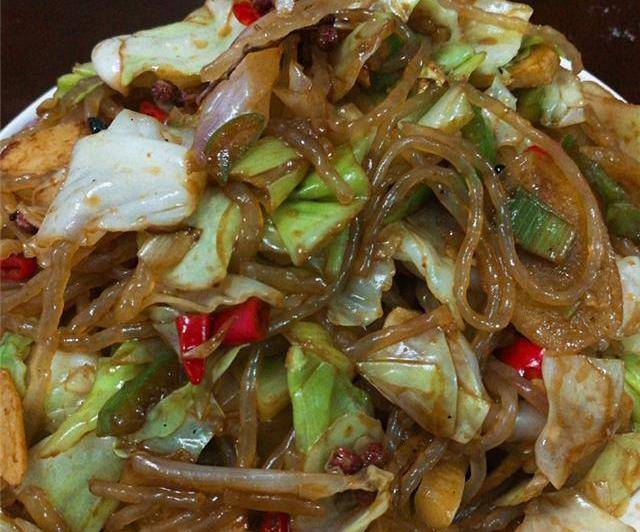 包菜炒珍珠粉,他们告诉我这些珍珠粉都是他们从家乡带回来的,看起来和我们平时吃的米粉差别不大,味道完全不一样,口感很软很粘因为又清爽又好吃,所以用嘴轻轻地吸了一下就完成了,再加上松脆的包菜,我一个人吃了大半碗。