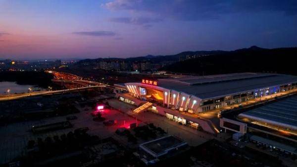 中国西南最大高铁站:昆明南站。站房立面造型设计以“雀舞春城,美丽绽放”为主题,通过多种细部装饰和构件等建筑语言表达出云南昆明“民族交融、国际交流”“西南枢纽、南亚之门”的高原城市特点。