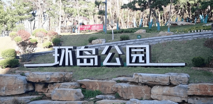 环岛公园位于珠海路和昆嵛路交汇处,建设面积3.1万平方米,两侧架设了过街天桥,整个公园展现出返璞归真、亲近自然的风格,是城区一处“城市氧吧”和“露天健身房”。