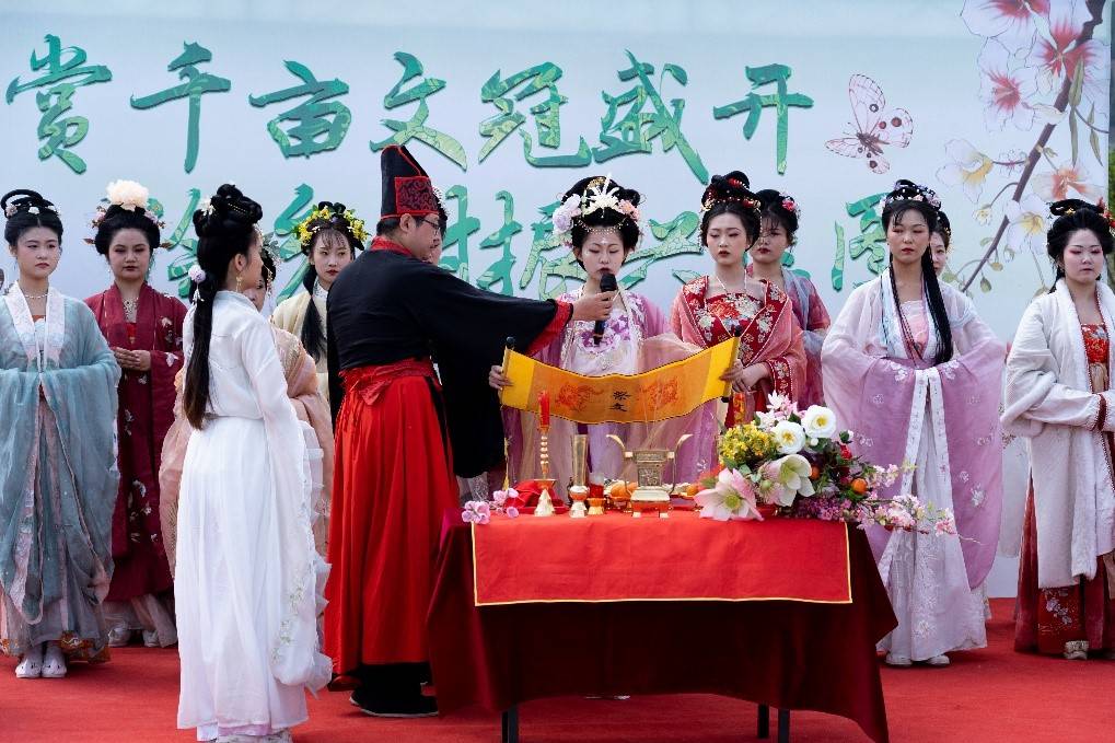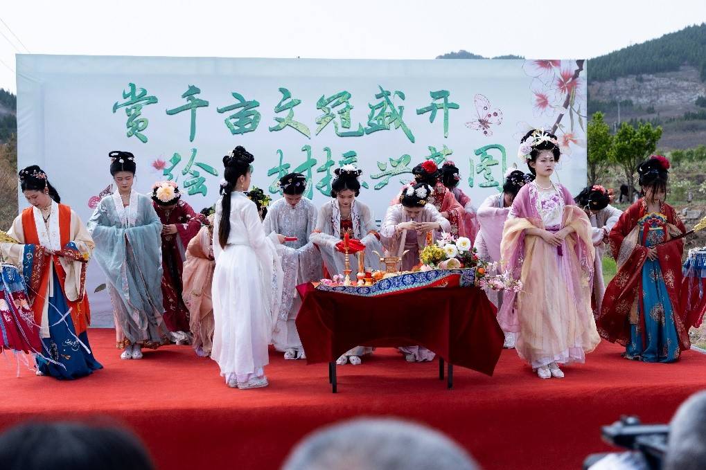 开幕式上,各类特色节目精彩绝伦、层出不穷。扇子舞、太极拳、戏曲、儿童架子鼓、花神祭等精彩的节目表演引来了观众阵阵喝彩。清香怡人的文冠果茶、美味的临淄特产、传统火爆的淄博烧烤也来助力兴村振兴,吸引游客纷纷驻足。
